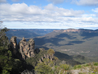 The Blue Mountains are known for far more than just Yulefest, although admittedly that is what I was most excited about. Blue Mountains are probably best known for well, the "Blue Mountains", a range of mountains covered in slightly blue eucalyptus trees, and the Three Sisters at Echo Point. These "sisters" are three stone peaks (about 900 meters high each) and are thought to have been turned to stone by their witch-doctor father to protect them from an evil beast! And Katoomba (the city where the peaks are), previously a mining town, is also a Guinness World Record holder for the steepest railway at 52 degrees (doesn't sound like much but when you are 415 meters up in a rail car you would think otherwise).